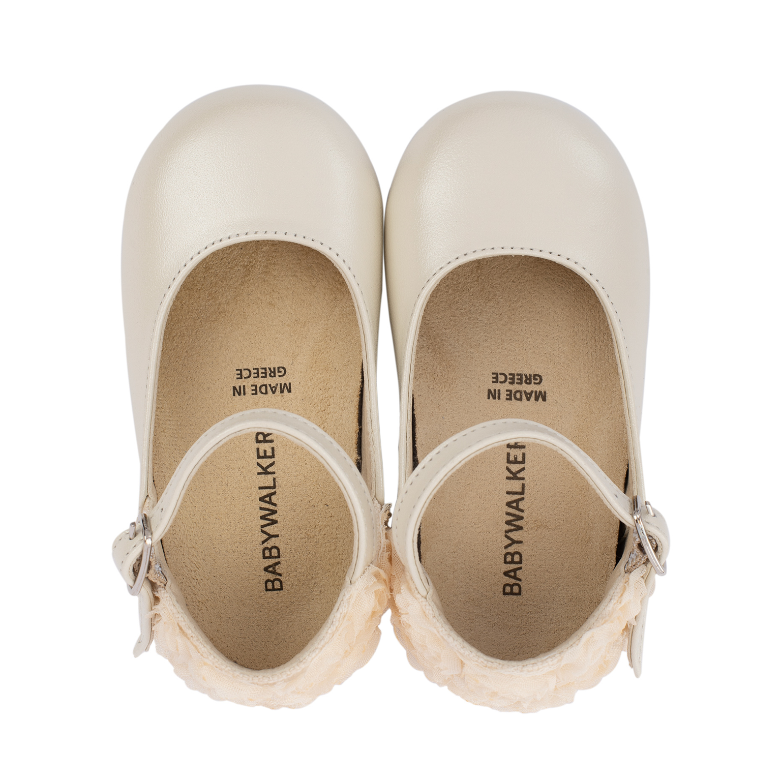 Γαλλικό Γοβάκι με Φτέρνα από Chiffon Λουλούδια από Δέρμα Πέρλα σε Εκρού χρώμα Babywalker