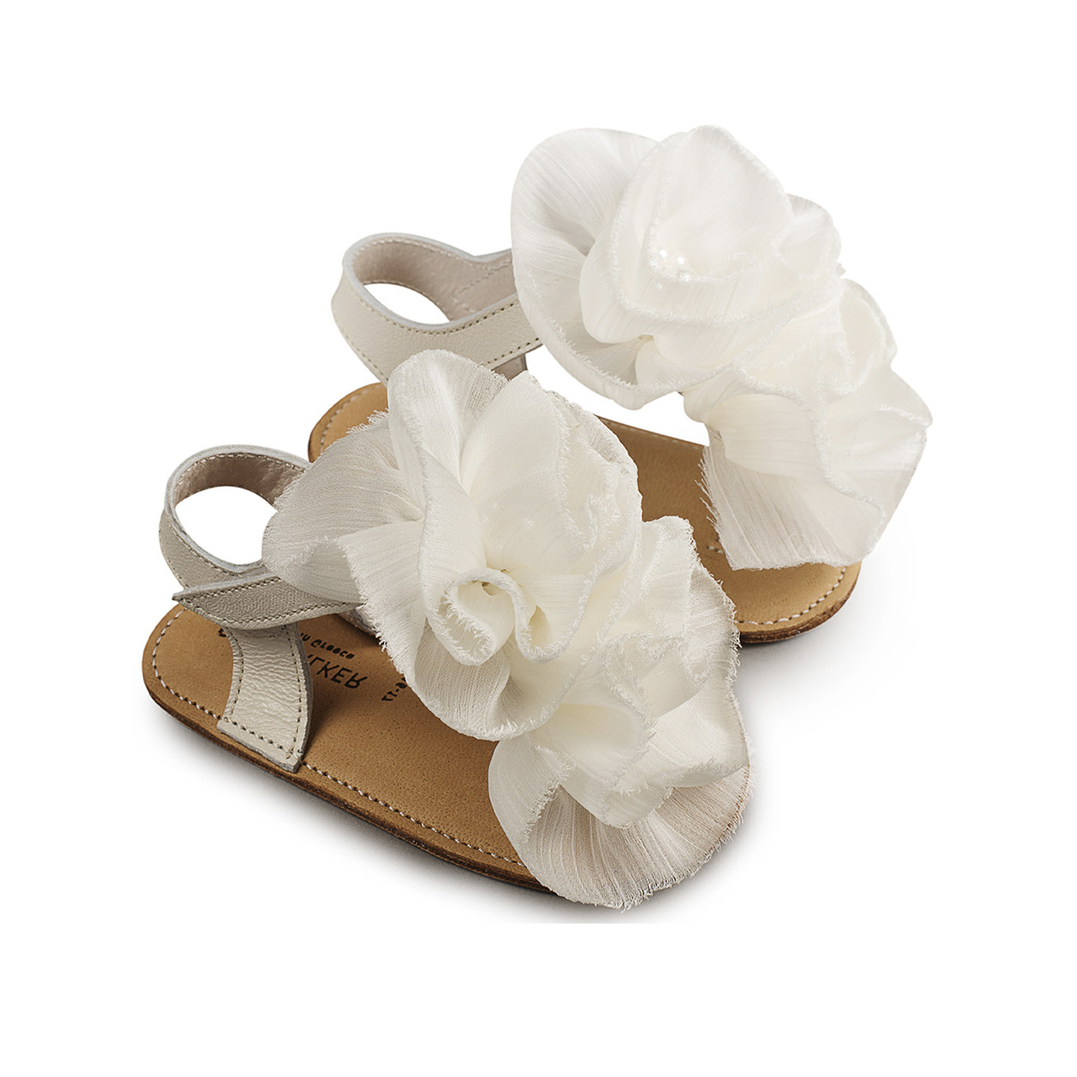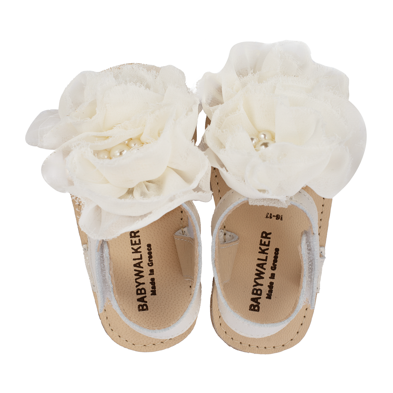 Δερμάτινο Πέδιλο με Chiffon λουλούδια από Δέρμα Πέρλα σε Εκρού Χρώμα Babywalker