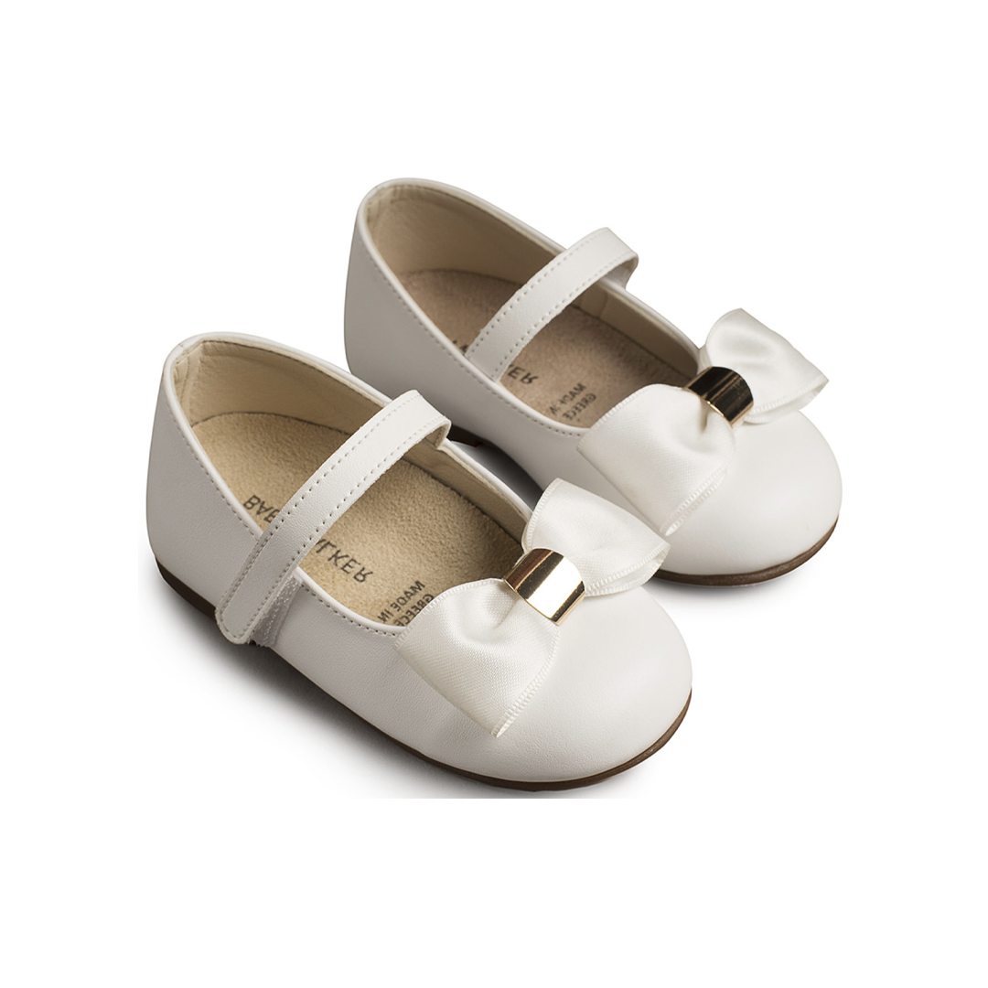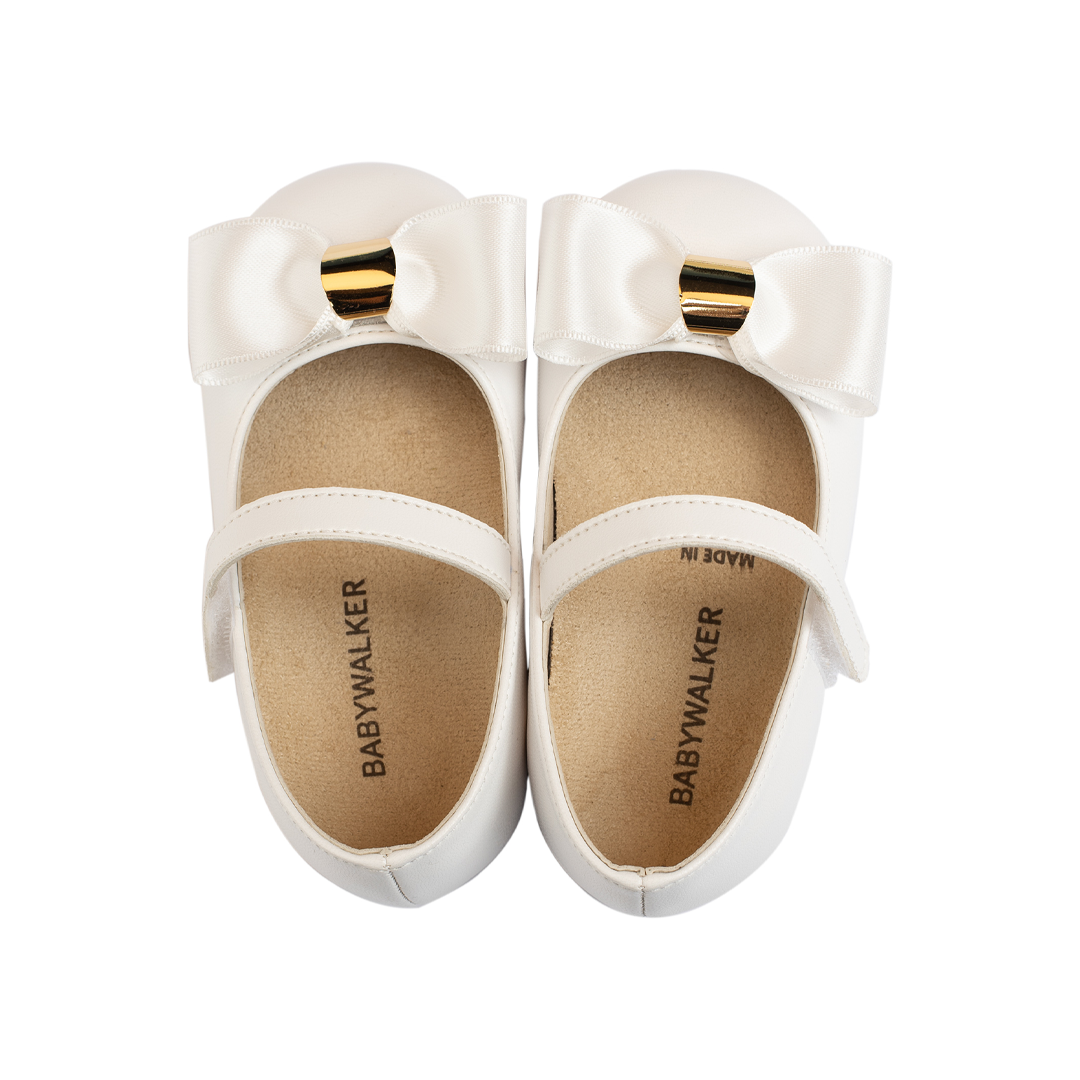 Δερμάτινο Γοβάκι με Satin Φιόγκο και Χρυσή Λεπτομέρεια από Συνθετικό Δέρμα σε Λευκό χρώμα Babywalker